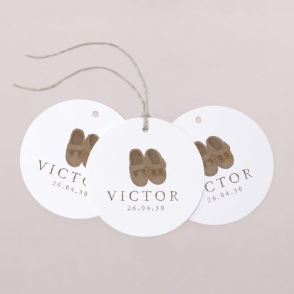 Les étiquettes rondes sont idéales pour offrir une jolie attention à vos invités le jour J. Elles sont à personnaliser avec le prénom de votre enfant sans oublier la date de la cérémonie.