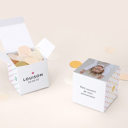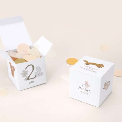 Réservez une attention originale aux invités présents à l'anniversaire de votre enfant avec nos cubes surprises, à garnir de friandises et petits cadeaux festifs.