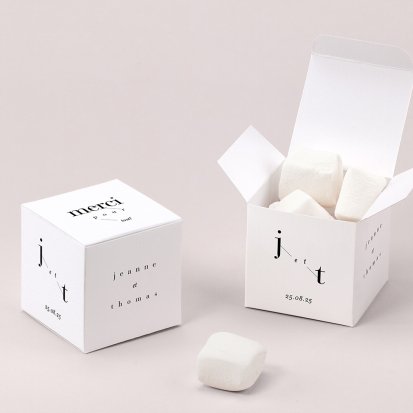 La jolie boîte personnalisée et assortie à votre faire-part. Parfaite pour offrir des macarons, sablés, calissons ou petits cadeaux. Placez-la sur la table du repas, ou sur une table à part. Ainsi, chacun viendra prendre son petit présent.