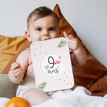 La naissance d'un nouvel enfant est une étape importante dans une famille. Avec le coffret de 15 cartes avec le chiffre de la semaine ou du mois de la première année de bébé, vous pouvez retracer l'évolution de votre fille ou de votre garçon. Pour cela, il vous suffit à chaque date anniversaire, de prendre un cliché de votre bébé à côté de la carte étape correspondant à son âge : 1 semaine, jusqu'à 12 mois. Une fois la photo prise, vous pouvez l'imprimer, la conserver en version numérique ou la partager par email ou via les réseaux sociaux. Les jeunes mamans adorent partager sur Instagram l'évolution de leur bébé avec de jolies cartes étapes.