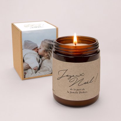 Faites entrer l'atmosphère de Noël dans la maison grâce à nos jolies bougies parfumées. En cadeau ou en déco, personnalisez-les avec un message, une photo, une pensée qui vous tient à cœur.