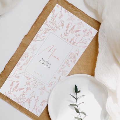 Nos créatrices offrent toute l'année une jolie papeterie au design soigné et tendance. Retrouvez dans notre boutique en ligne des menus de baptême avec des couleurs tendres, des illustrations délicates et de belles polices d'écriture.