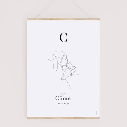 Votre faire-part de naissance décliné en affiche ? C'est désormais possible avec l'affiche naissance ! Une affiche originale directement inspirée de son petit faire-part de naissance, sur laquelle apparaissent son prénom, son poids, sa taille, ainsi que l'heure et le jour de son arrivée !