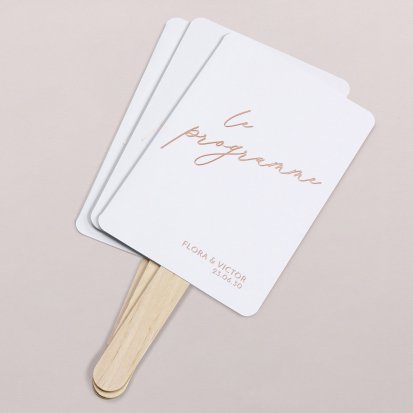 Idéal pour fournir toutes les informations nécessaires le jour J et rafraîchir vos invités ! A distribuer à l’entrée de la messe ou bien à placer dans une grande corbeille. L'éventail permet de donner le ton de la cérémonie et renseigne vos convives sur le déroulement de cette belle journée.