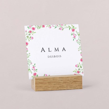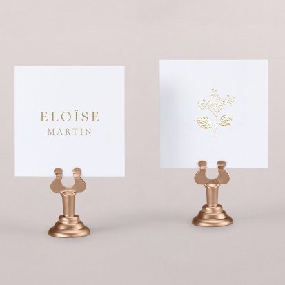 Indiquez joliment leur place à vos convives avec un marque-place mariage personnalisé. Posez-le sur la serviette ou glissez-le sur un élément de décoration !