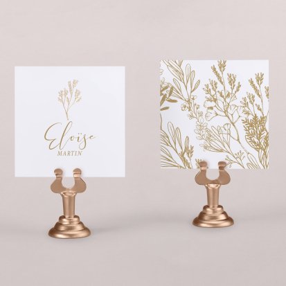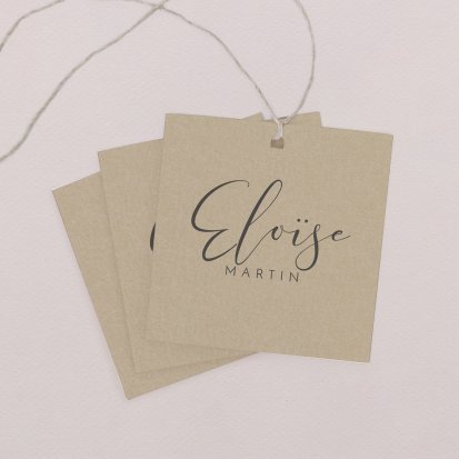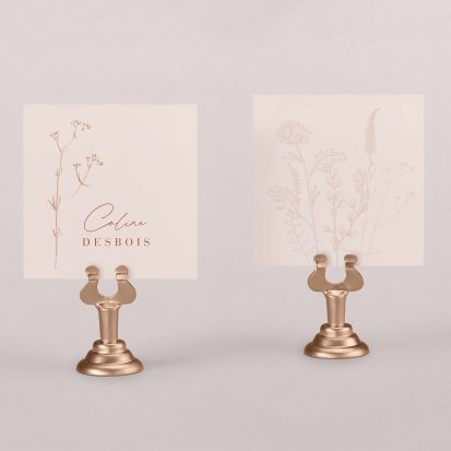 Indiquez joliment leur place à vos convives avec un marque-place mariage personnalisé. Posez-le sur la serviette ou glissez-le sur un élément de décoration !