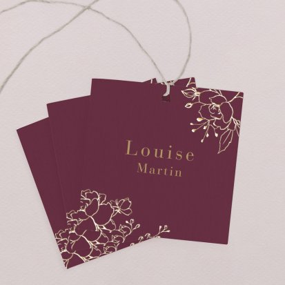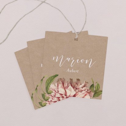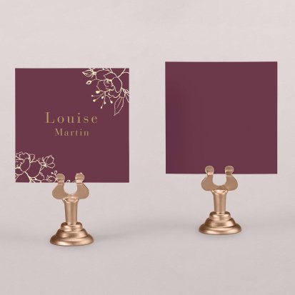 Indiquez joliment leur place à vos convives avec un marque-place mariage personnalisé. Posez-le sur la serviette ou glissez-le sur un élément de décoration !