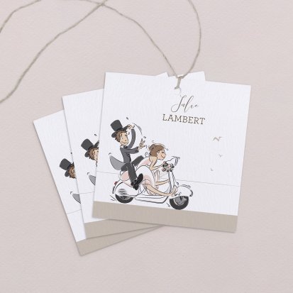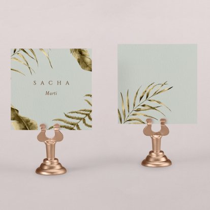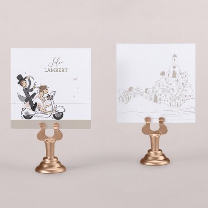 Indiquez joliment leur place à vos convives avec un marque-place mariage personnalisé. Posez-le sur la serviette ou glissez-le sur un élément de décoration !