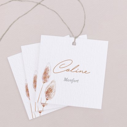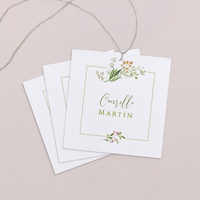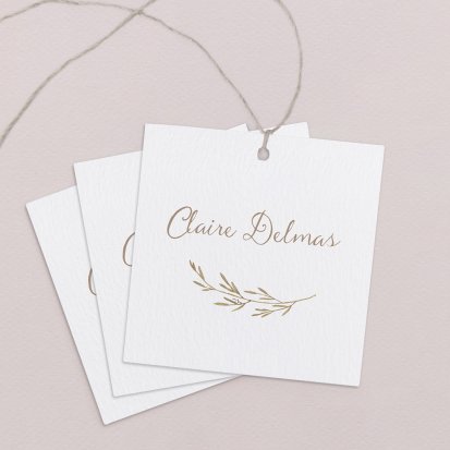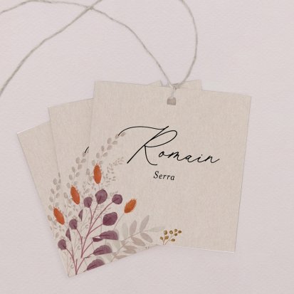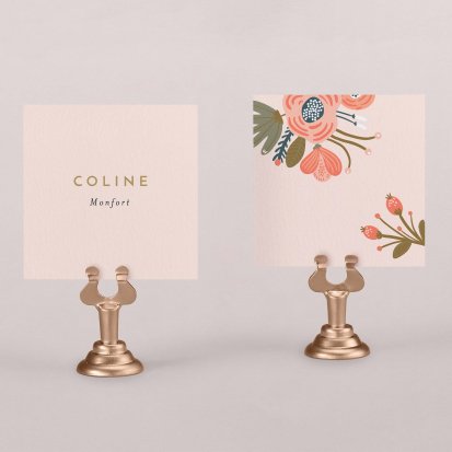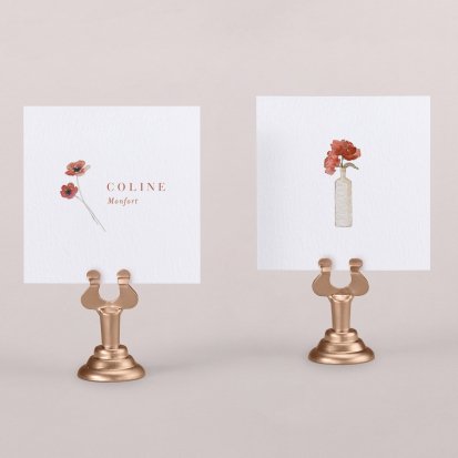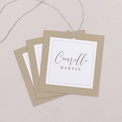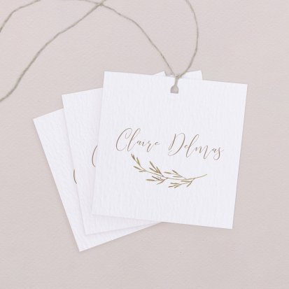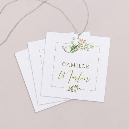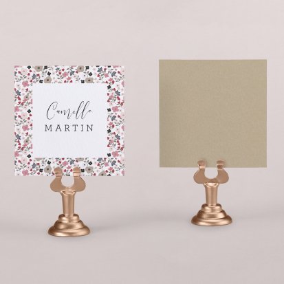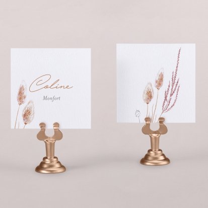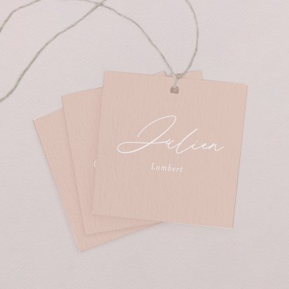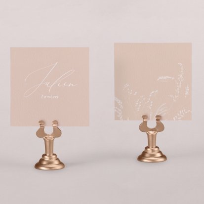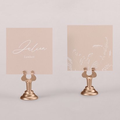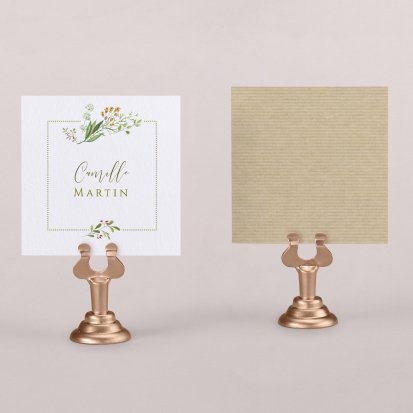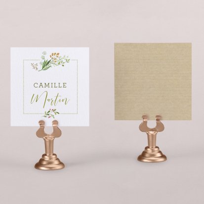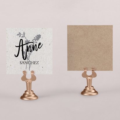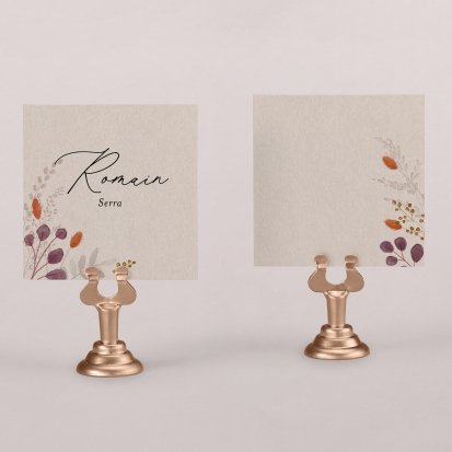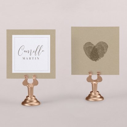 Indiquez joliment leur place à vos convives avec un marque-place mariage personnalisé. Posez-le sur la serviette ou glissez-le sur un élément de décoration !