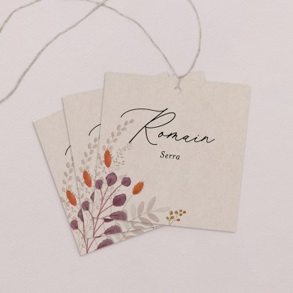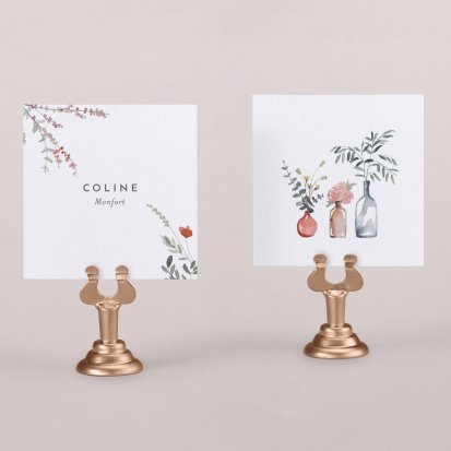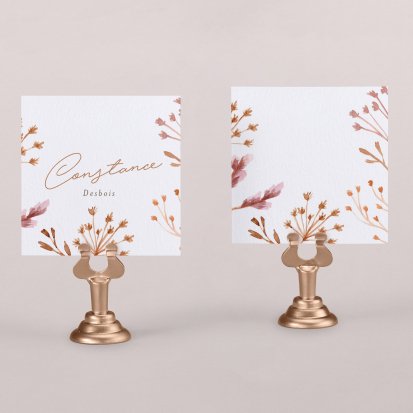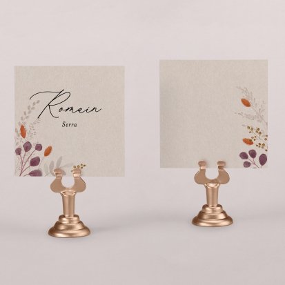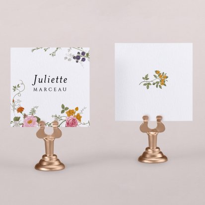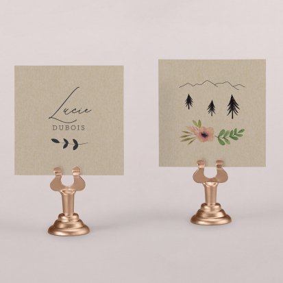 Indiquez joliment leur place à vos convives avec un marque-place mariage personnalisé. Posez-le sur la serviette ou glissez-le sur un élément de décoration !