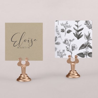 Indiquez joliment leur place à vos convives avec un marque-place mariage personnalisé. Posez-le sur la serviette ou glissez-le sur un élément de décoration !