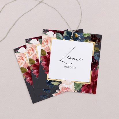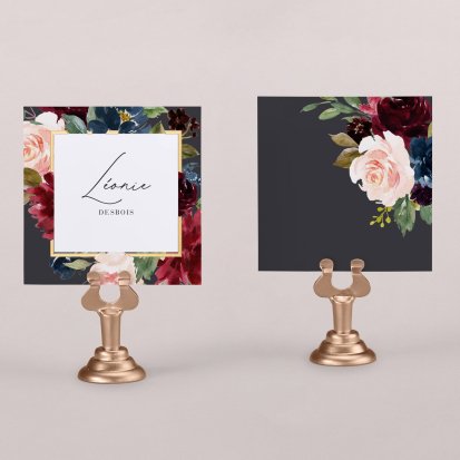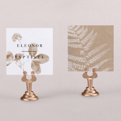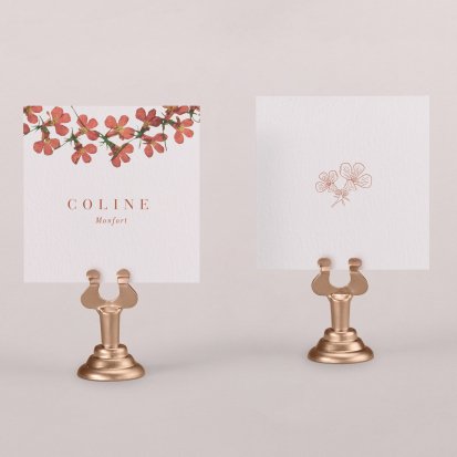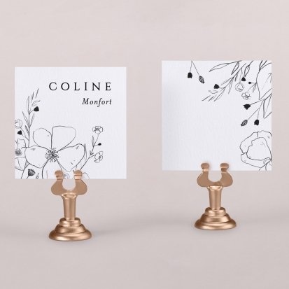 Indiquez joliment leur place à vos convives avec un marque-place mariage personnalisé. Posez-le sur la serviette ou glissez-le sur un élément de décoration !