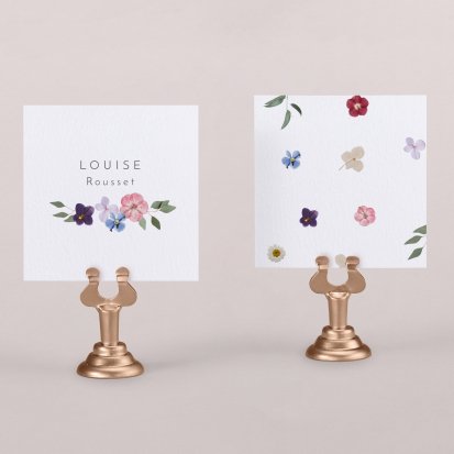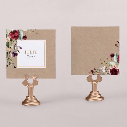Indiquez joliment leur place à vos convives avec un marque-place mariage personnalisé. Posez-le sur la serviette ou glissez-le sur un élément de décoration !