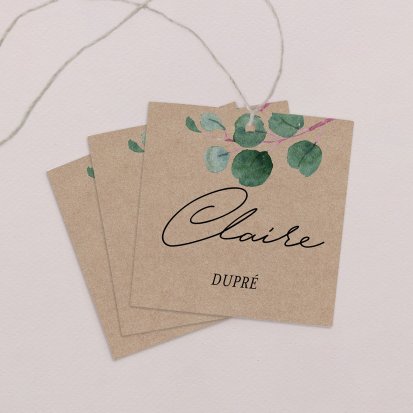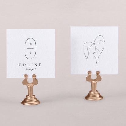 Indiquez joliment leur place à vos convives avec un marque-place mariage personnalisé. Posez-le sur la serviette ou glissez-le sur un élément de décoration !