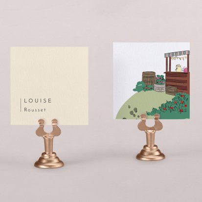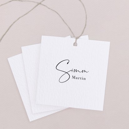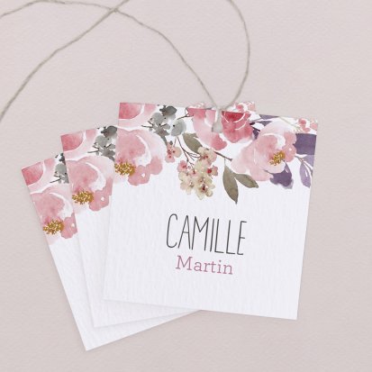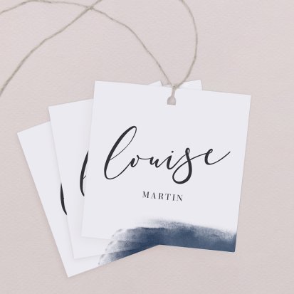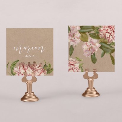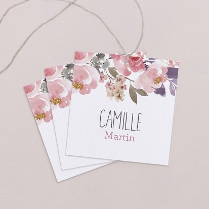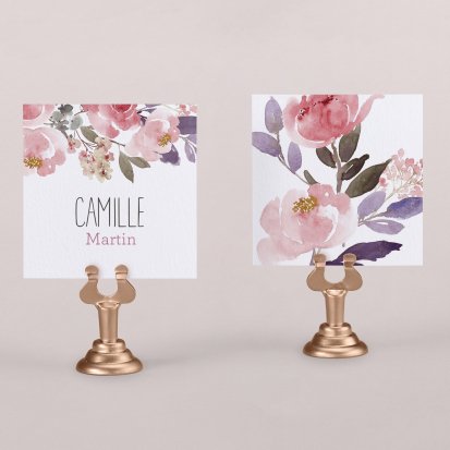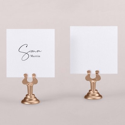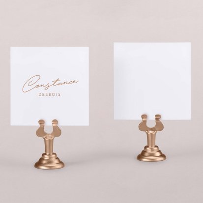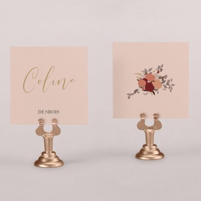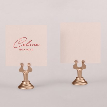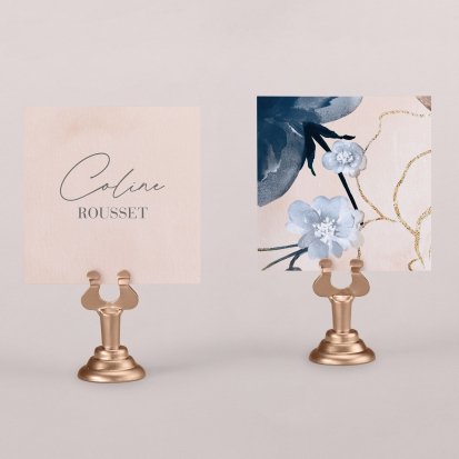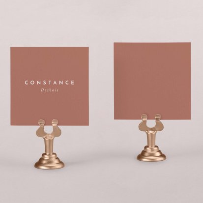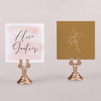 Indiquez joliment leur place à vos convives avec un marque-place mariage personnalisé. Posez-le sur la serviette ou glissez-le sur un élément de décoration !