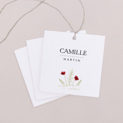 Indiquez joliment leur place à vos convives avec un marque-place mariage personnalisé. Posez-le sur la serviette ou glissez-le sur un élément de décoration !