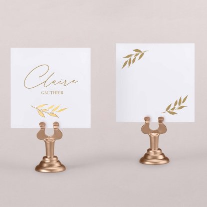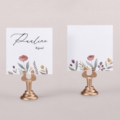 Indiquez joliment leur place à vos convives avec un marque-place mariage personnalisé. Posez-le sur la serviette ou glissez-le sur un élément de décoration !
