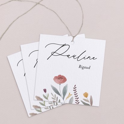 Une fois votre création choisie, place à la personnalisation ! Les marques-places se customisent très simplement avec le prénom de chacun de vos convives.