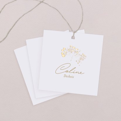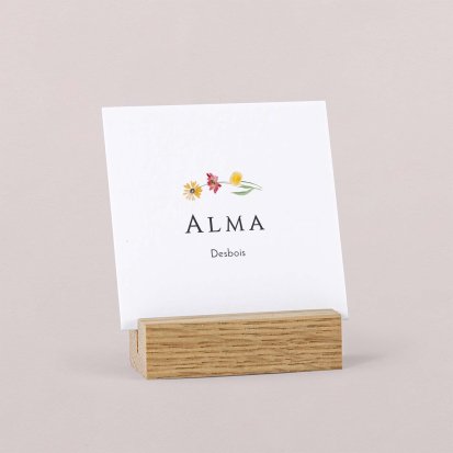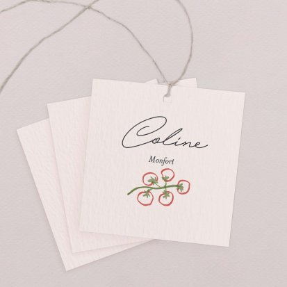 Si le prénom est l’élément indispensable à faire figurer sur vos marques-places, vous pouvez aussi, si vous le souhaitez, ajouter une petite référence au numéro de table ou compléter votre création avec une illustration dans le thème de votre mariage.