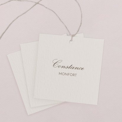 Un marque-place classique trouvera aisément sa place sur une table, tandis qu’un perforé pourra être agrémenté d’une ficelle ou d’un ruban et glissé autour d’une serviette, sur une composition florale ou encore suspendu.