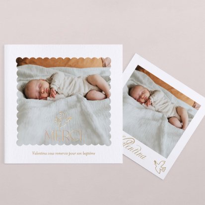 Vos proches vous ont comblé de cadeaux, d'attentions et d'amour... En retour, envoyez-leur une jolie carte de remerciements baptême personnalisée. Laissez-vous inspirer par notre collection !