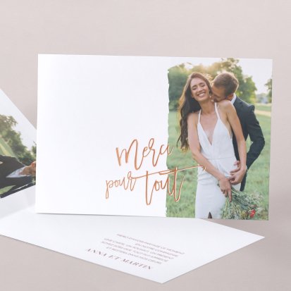 Concluez votre union sur une note d'émotion grâce à la carte de remerciement mariage.