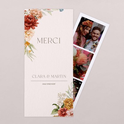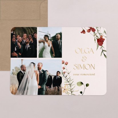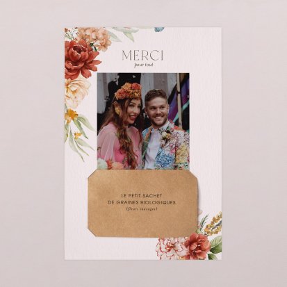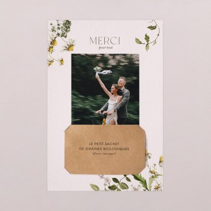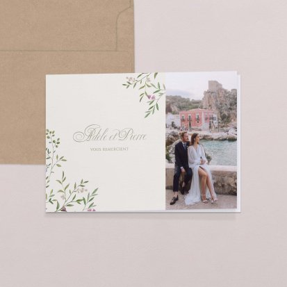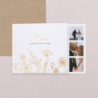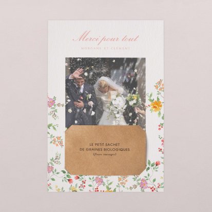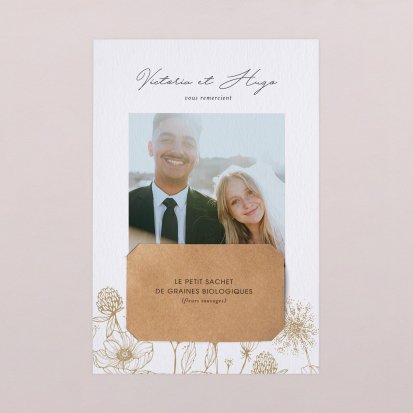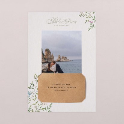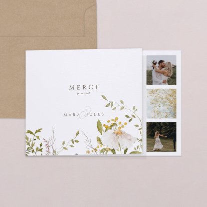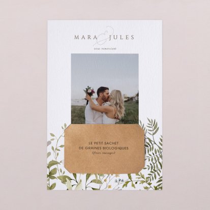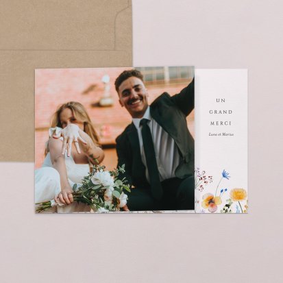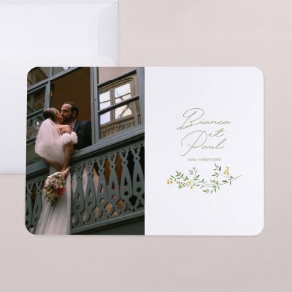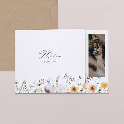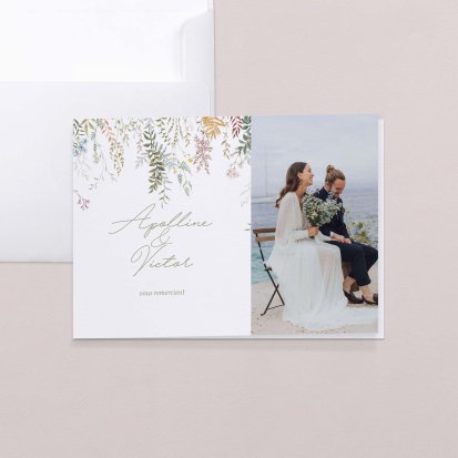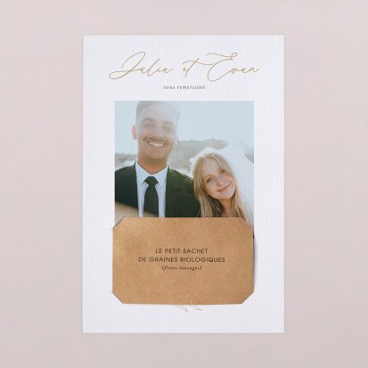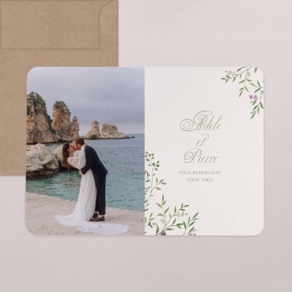 Concluez votre union sur une note d'émotion grâce à la carte de remerciement mariage.