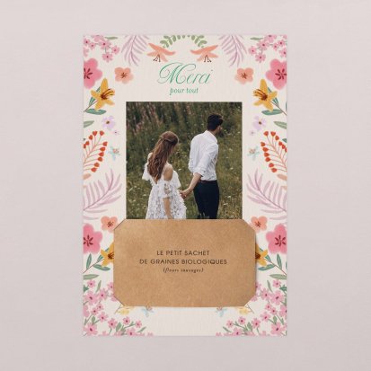Concluez votre union sur une note d'émotion grâce à la carte de remerciement mariage.