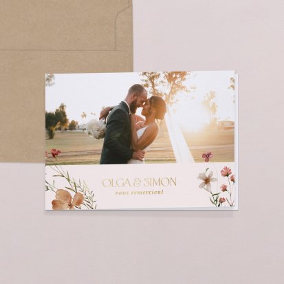 Concluez votre union sur une note d'émotion grâce à la carte de remerciement mariage.