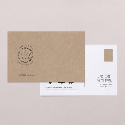 Organisez plus rapidement et clairement votre cérémonie. Qui vient au vin d’honneur, au repas ... Grâce la carte postale réponse vous connaîtrez tous les petits détails qui feront la réussite de votre organisation. A commander en même temps que vos faire-part pour un envoi simultané