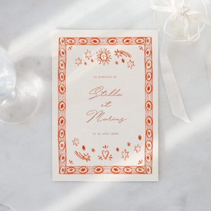 Apportez de la chaleur à votre mariage avec un faire-part de mariage terracotta. Organisez ainsi l’ensemble de votre thème de mariage autour de cette couleur chic qui illumine votre réception.