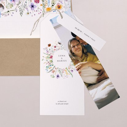 Pour vos invités, vous avez prévu un lot de cartes qui annoncent la date et le lieu de votre mariage. Définissez en amont la quantité de faire-part de mariage dont vous avez besoin. Lors de la livraison, chaque lot contiendra une enveloppe gratuite qui permet d’envoyer par courrier ou donner en main propre votre faire-part personnalisé.