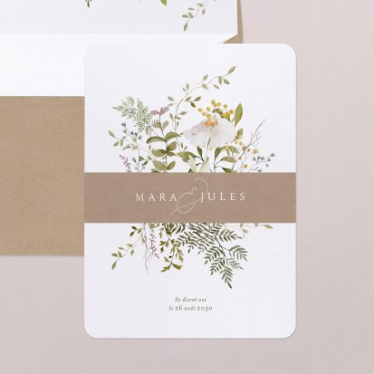 Ajoutez un petit accessoire sur vos cartes d’invitation pour un effet élégant. Surprenez vos destinataires avec des fleurs séchées sur un faire-part bohème, un ruban de soie pour un mariage chic ou une ficelle en lin pour un thème champêtre.
