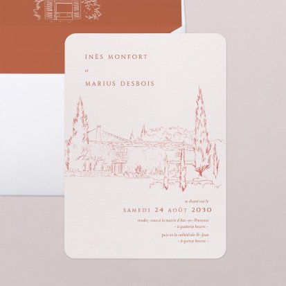 Les bords arrondis de votre faire-part de mariage adoucissent l’embarquement immédiat pour un nouveau voyage. Ce voyage sera celui de votre amour avec une cérémonie chaleureuse qui transparaît déjà sur le faire-part que vous allez choisir.
