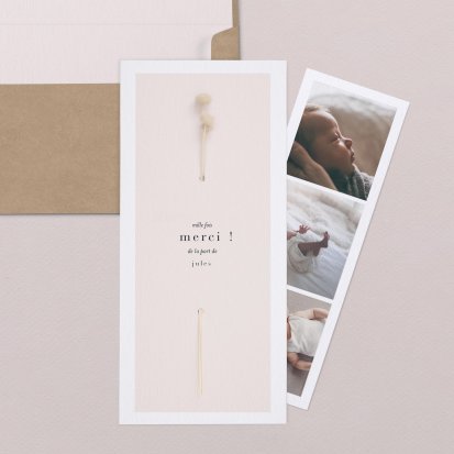 Remerciez vos proches avec une carte pleine de tendresse, pour leur présence et leur soutien tout au long des premiers instants de bébé. Une attention simple et élégante qui saura exprimer vos émotions avec délicatesse.