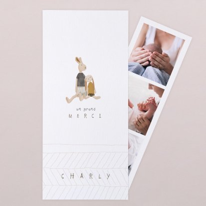 Remerciez vos proches avec une carte pleine de tendresse, pour leur présence et leur soutien tout au long des premiers instants de bébé. Une attention simple et élégante qui saura exprimer vos émotions avec délicatesse.