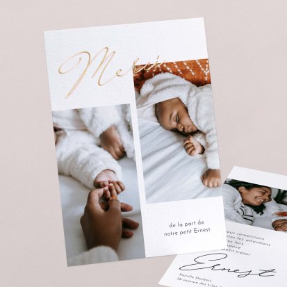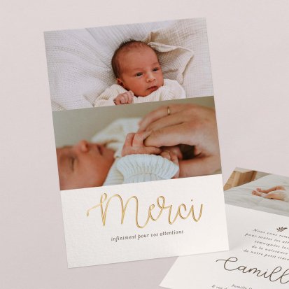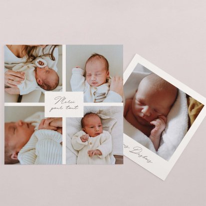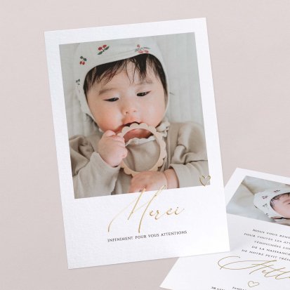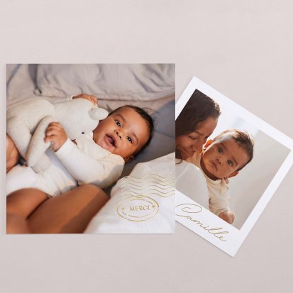Remerciez vos proches avec une carte pleine de tendresse, pour leur présence et leur soutien tout au long des premiers instants de bébé. Une attention simple et élégante qui saura exprimer vos émotions avec délicatesse.