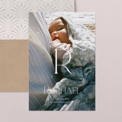 Optez pour la carte de naissance avec photo pour afficher un cliché de famille ou de votre bébé avec son frère ou sa sœur. Le faire-part de naissance photo ancre votre foyer dans une nouvelle aventure remplie d’amour.