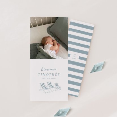 Pourquoi faire le choix d’un thème marin pour votre faire-part de naissance ? Évoquant l’aventure et la beauté de ses paysages, la mer offre un style original et moderne à votre carte de naissance en papier.