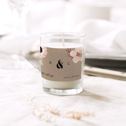 À vous de faire votre choix parmi les parfums disponibles : rose profonde, fleurs de jasmin envoûtantes, fleur de coton romantique ou figue gourmande. Sur une même table, privilégiez un lot de bougies au même parfum. Mais si vous destinez vos bougies à un cadeau de remerciements, vous pouvez varier les senteurs pour surprendre vos invités.