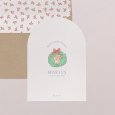 Sur le faire-part de naissance Mignonne couronne, un adorable petit lapin s’invite au cœur d’une traditionnelle couronne de Noël. Illustrée avec tendresse, cette création conte la plus belle des arrivées, juste à temps pour les fêtes de fin d’année.