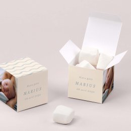 Ce faire-part de naissance se présente sous forme de carte carrée pliée. À l'ouverture, son destinataire découvrira la jolie photo de votre enfant, accompagnée de votre texte personnalisé.