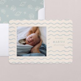 Avec ses vagues illustrées en aquarelle, le faire-part de naissance Vague d'amour partagera, avec une immense douceur, la venue au monde de votre petite fille ou garçon.