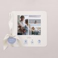 Avec ses doux tons bleus, le faire-part de naissance photo Photomaton - bleu dévoile un reportage photo de votre petite fille ou garçon. Les détails de sa naissance sont joliment illustrés en-dessous de son prénom calligraphié, parfait pour conter avec tendresse son arrivée.