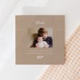 Ce faire-part de naissance se présente sous forme de carte carrée pliée. À l'ouverture, son destinataire découvrira la jolie photo de votre enfant, accompagnée de votre texte personnalisé.