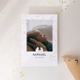 Ce faire-part de naissance se présente sous la forme d'une carte portrait, personnalisable au recto et au verso.