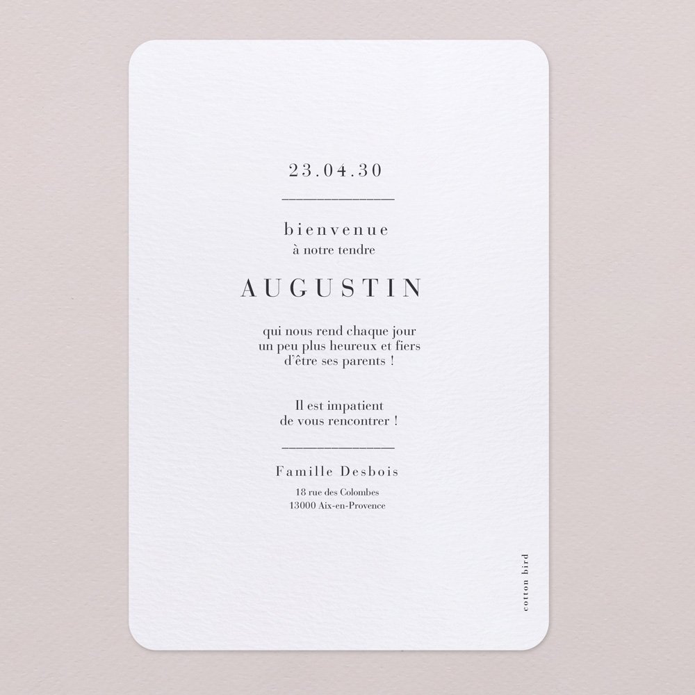 Ce faire-part de naissance se présente sous forme de carte portrait recto verso, avec des coins arrondis pour plus de douceur.
