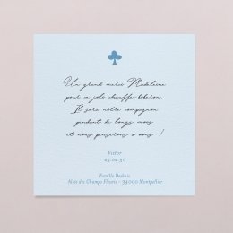 Ce faire-part de naissance se présente sous forme de carte portrait recto verso, avec des coins arrondis pour plus de douceur.
