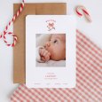 Partagez votre bonheur avec douceur, grâce au faire-part de naissance Sweety candy. Canne à sucre de Noël, houx, mignon ruban illustré et typographie aux tons rosés subliment ce modèle : parfait pour conter une naissance pendant la saison des fêtes.