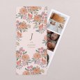 Sur le faire-part de naissance Scarlett, écureuil, lapin et oiseau jouent à cache cache au cœur d'un superbe tableau de fleurs oranges et roses. Une création joyeusement bohème, parfaite pour partager la naissance de bébé au printemps ou en été.